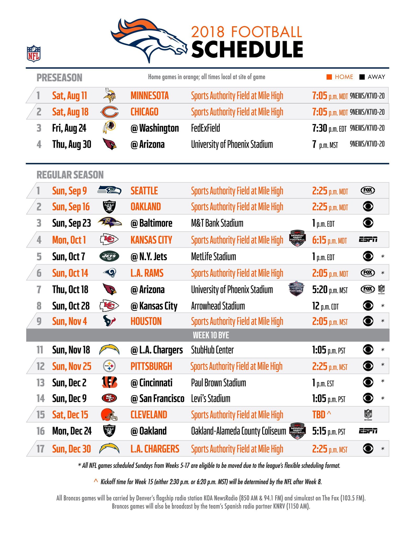 The entire schedule will be released later tonight denver broncos. Denver broncos cbs 700wlw • espn 1530 • 102.7 webn add to.